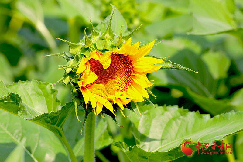 7月20日,位于文縣尚德鎮(zhèn)尹家壩村的矮化向日葵進(jìn)入盛花期,金燦燦的花朵競相綻放,匯成金黃色海洋,引來成群的蝴蝶嬉戲、蜜蜂采蜜,生態(tài)宜居的美麗村莊鑲嵌其間,慕名而來的游客愜意賞花拍照、絡(luò)繹不絕。