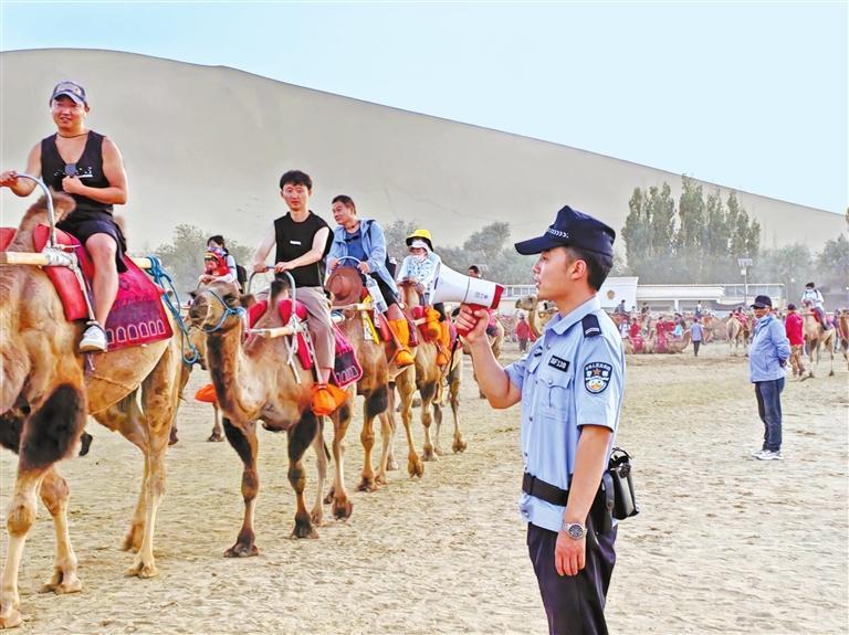 面對隨之而來的社會治安防控壓力,敦煌公安立足旅游特色,結(jié)合夏季治安打擊整治行動,精準(zhǔn)布警、精細(xì)管控、精致服務(wù),時(shí)刻踐行“民警就是導(dǎo)游,隊(duì)伍就是風(fēng)景,管理就是服務(wù),執(zhí)法就是守護(hù)”的敦煌旅游警務(wù)理念,用“5A”警務(wù)服務(wù)“5A”景區(qū)。