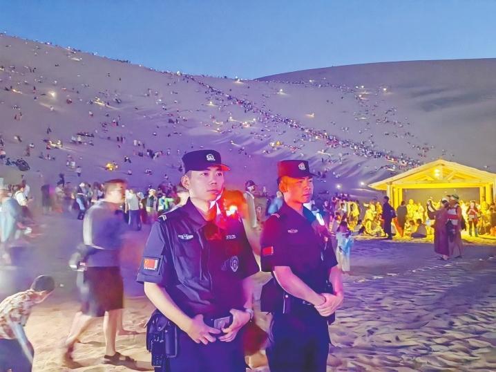 “現(xiàn)在的游客數(shù)量每天都在增長,基本上每天都有4萬多人入園。凌晨時(shí)分,鳴沙山上仍然是繁星點(diǎn)點(diǎn)、燈光閃爍,游客自發(fā)組織的演唱會讓在場的人都流連忘返。我們現(xiàn)在早上天不亮就上崗,晚上要保證每一名游客安全出園才能下班。”鳴沙山派出所所長達(dá)春平說。
