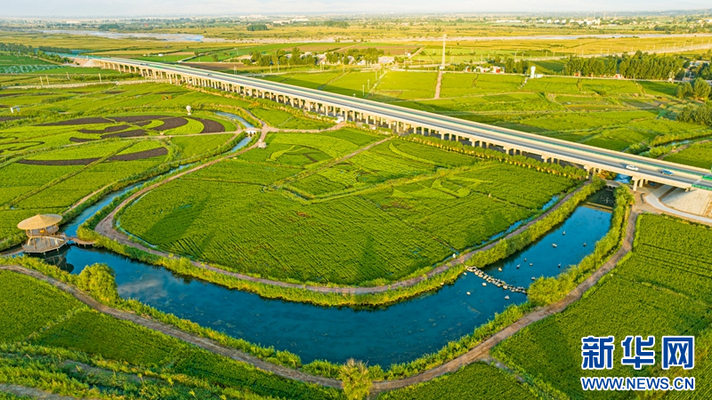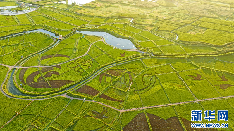 8月20日,在甘肅省張掖市甘州區(qū)烏江鎮(zhèn)新河田園綜合體藝術稻田景觀區(qū),以“絲路水鄉(xiāng)·稻畫田園”為主題組成的稻田畫惟妙惟肖、栩栩如生,呈現(xiàn)出祁連山下別樣的田園魅力。新華網(wǎng)發(fā)(成林 攝)