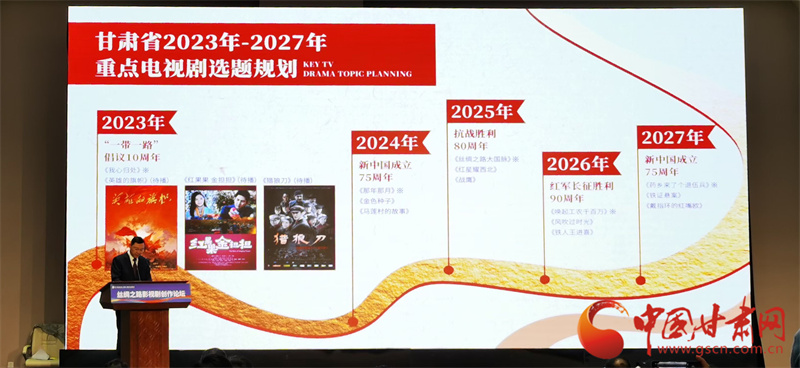 論壇期間,國(guó)家廣電總局電視劇司發(fā)布了“一帶一路”倡議10周年重點(diǎn)電視劇項(xiàng)目。甘肅省廣電局舉行了甘肅省影視資源及重點(diǎn)選題項(xiàng)目推介,并與華策影視集團(tuán)簽署了戰(zhàn)略合作協(xié)議,部分嘉賓圍繞論壇主題作了主旨演講。