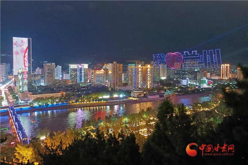 9月30日“黃河·印象”國(guó)慶大型無人機(jī)演出秀在黃河之濱上演 (宋芳科 攝)