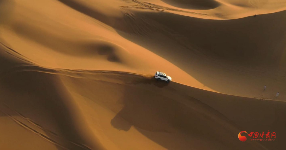 在金塔,同樣受游客歡迎的還有弱水環(huán)流景區(qū),在這里綠洲與黃沙相伴,藍天白云相映、水沙共生,是觀光旅游的絕佳勝地。一望無垠的沙丘輪廓清晰、層次分明,丘脊線平滑流暢,迎風面沙坡似水,背風面流沙如瀉,場面蔚為壯觀。車行其間,好像波峰浪谷之間的一葉小舟,一會兒到了浪尖,一會兒又跌進谷底,驚險刺激又酣暢淋漓,沙漠沖沙、沙漠越野、沙漠觀光備受戶外愛好者的青睞。