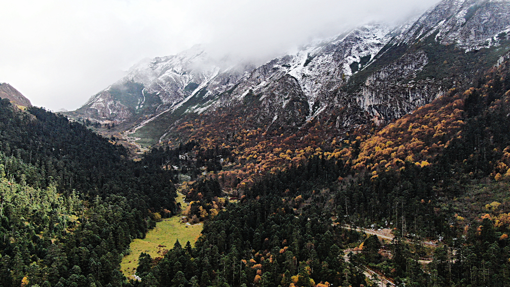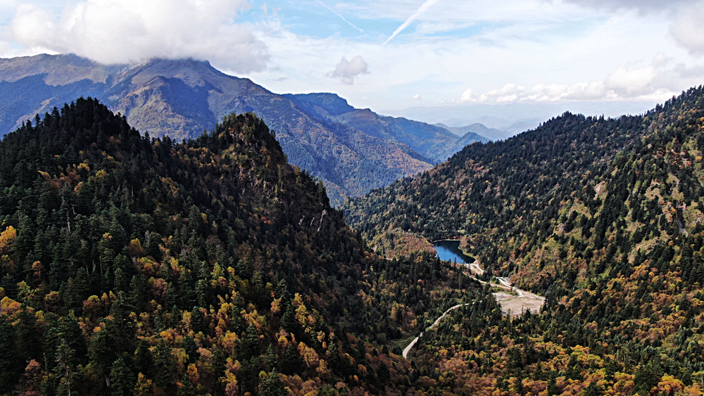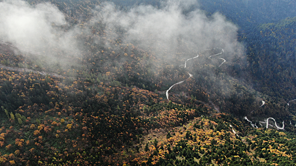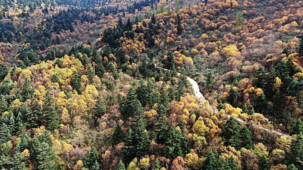 金秋時節(jié),甘肅省隴南市宕昌縣官鵝溝森林公園層林盡染,斑斕如畫,吸引了不少游客前來游玩。新華網(wǎng)發(fā)(劉輝 攝)