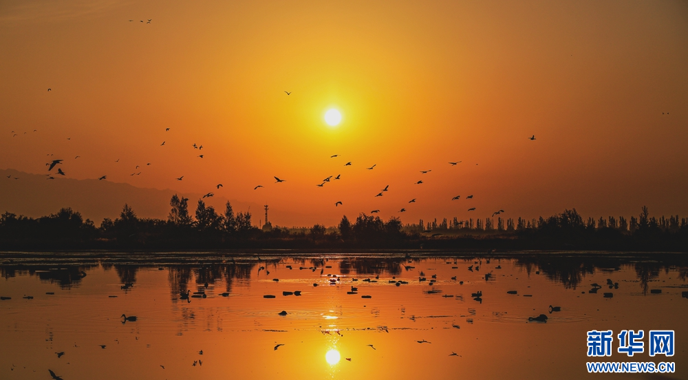 近日,在甘肅省張掖國(guó)家濕地公園,成群的白鷺迎著朝陽(yáng)悠然自得地飛翔、覓食、嬉戲,構(gòu)成了一幅朝陽(yáng)伴鷺飛的美麗畫卷。新華網(wǎng)發(fā)(陳禮 攝)