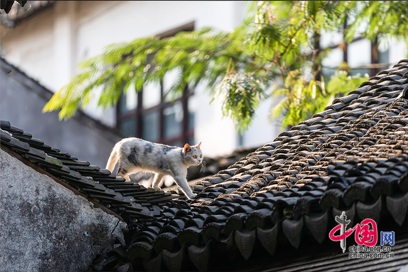 在毛孩子眼里,這就是包容一切活動的「游樂場」,片片青瓦上留下梅花印。或許你也該往古鎮(zhèn)的屋頂上瞧,檐角翹伸、清風(fēng)古韻,讓人心曠神迷?;蛲侵回堃粯优噬细咛?,推窗看那水那橋,那木門青瓦,就是江南水鄉(xiāng)的具象。