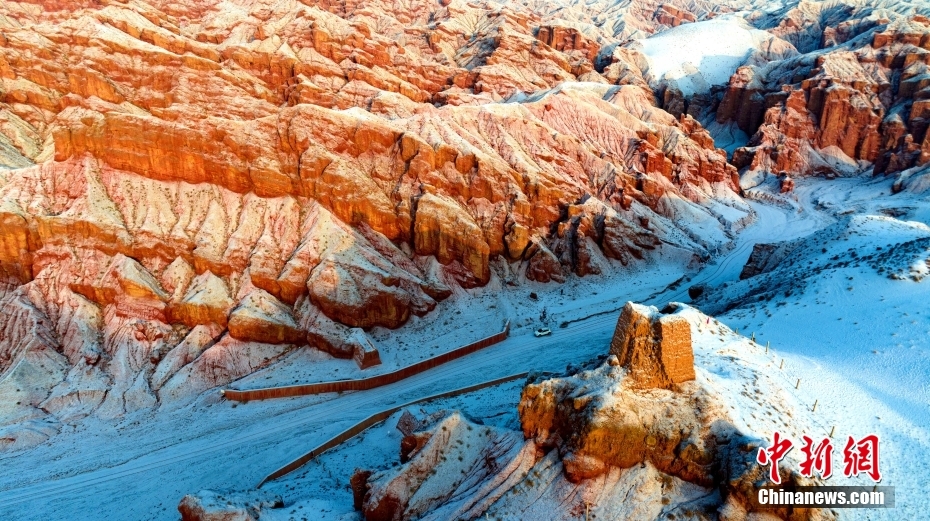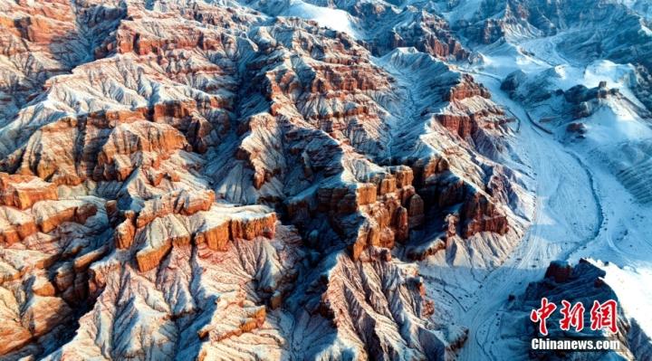 1月24日,雪霽初晴的甘肅省張掖市臨澤縣板橋鎮(zhèn)境內(nèi)的紅溝丹霞銀裝素裹,雪景如畫。圖/CNSphoto 楊瀟 攝