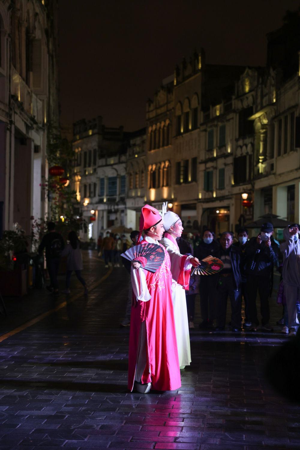 ↑觀眾在海口騎樓老街觀看瓊劇表演。瓊劇又稱“海南戲”,是國家級非物質(zhì)文化遺產(chǎn)之一。在海南欣賞瓊劇,是認(rèn)識當(dāng)?shù)匚幕?、體驗當(dāng)?shù)匚幕囊粋€好方式。新華社記者 張麗蕓 攝(資料圖片)