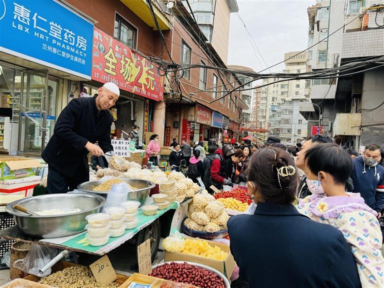 人間煙火味,最撫凡人心。說起煙火氣,小吃街巷一定算得上最有煙火氣的地方。華燈初上,蘭州正寧路夜市、大眾巷新光夜市、黃河食渡文化夜市等夜市人頭攢動,大家在各個小吃攤位前流連。甜醅子、灰豆子、釀皮、烤肉串、牛奶雞蛋醪糟、熱冬果、麻辣燙……蘭州小吃以獨有的風(fēng)味,征服了游客的味蕾——不少網(wǎng)友直呼,原來蘭州不僅擁有一碗面,更有內(nèi)涵豐富、口味獨特的硬核小吃,真是食客的“天堂”,誰不說一句蘭州的小吃好吃?