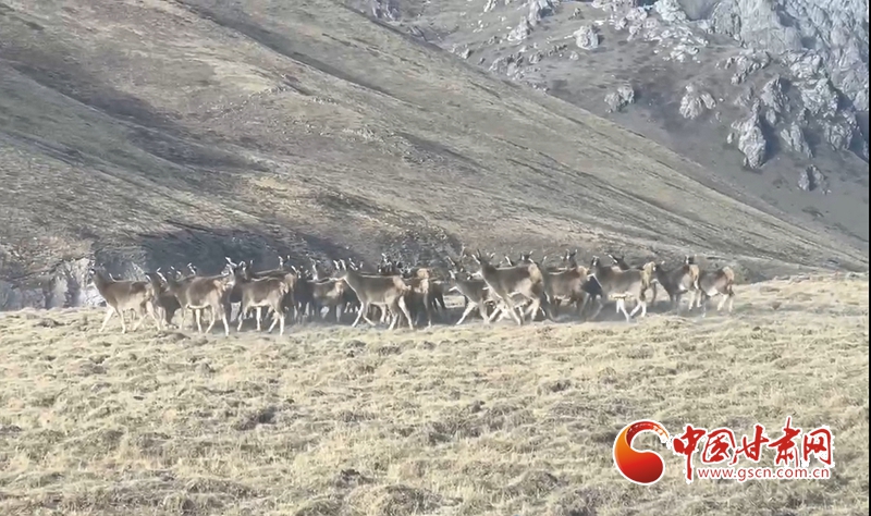 【甘快看】國家一級保護(hù)野生動物白唇鹿群“春游”祁連山
