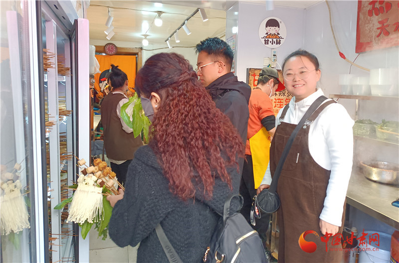 忙不完,根本忙不完,在天水麻辣燙最火爆的四合院,張明霞團隊的“甘小胖”麻辣燙也有一家實體店,正在為天南海北的游客煮麻辣燙。與其他店面不同,他們店還提供天水麻辣燙調料包,游客覺得好吃可以買回家自己做。