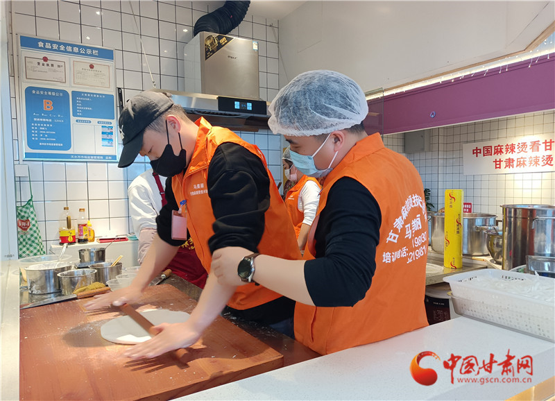 潑辣椒,制作手搟粉,在老師的帶領下,王學佳一個步驟一個步驟地學習天水麻辣燙的要領,希望能將正宗的天水麻辣燙帶回東北。