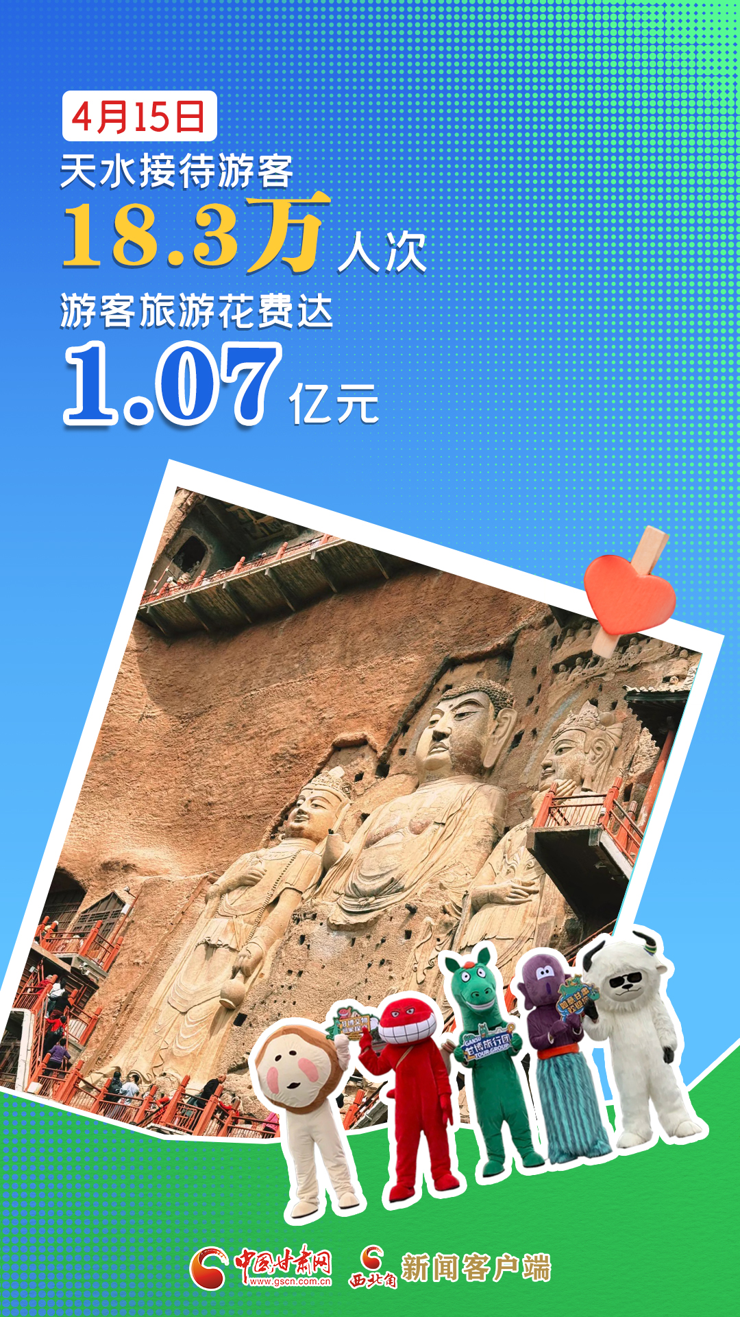 海報(bào)|4月15日,天水市共接待游客18.3萬人次,游客旅游花費(fèi)達(dá)1.07億元