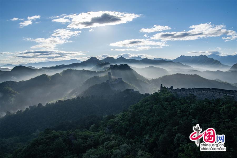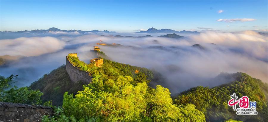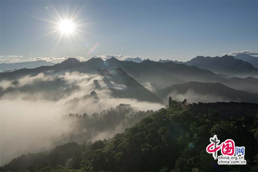 5月26日,雨后早晨,河北省承德市灤平縣境內(nèi)的金山嶺長城出現(xiàn)云海奇觀,變化莫測間。