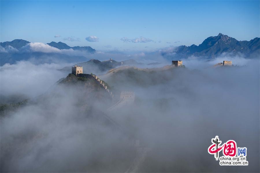 原標(biāo)題:金山嶺長城驚現(xiàn)云海翻騰、蛟龍出海奇景(組圖)