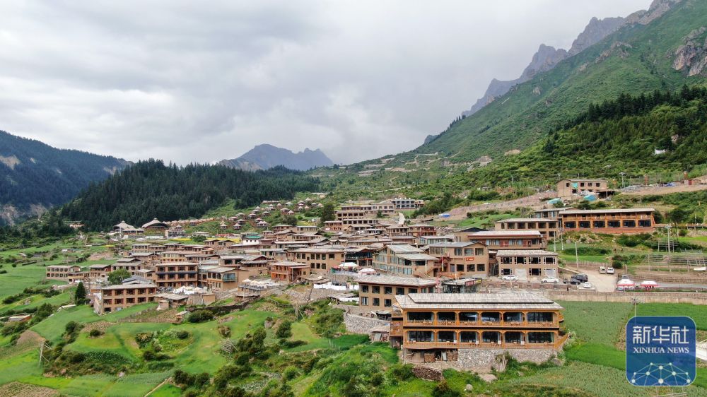 ↑ 這是6月27日拍攝的扎尕那民宿和風光(無人機照片)。新華社記者 陳斌 攝