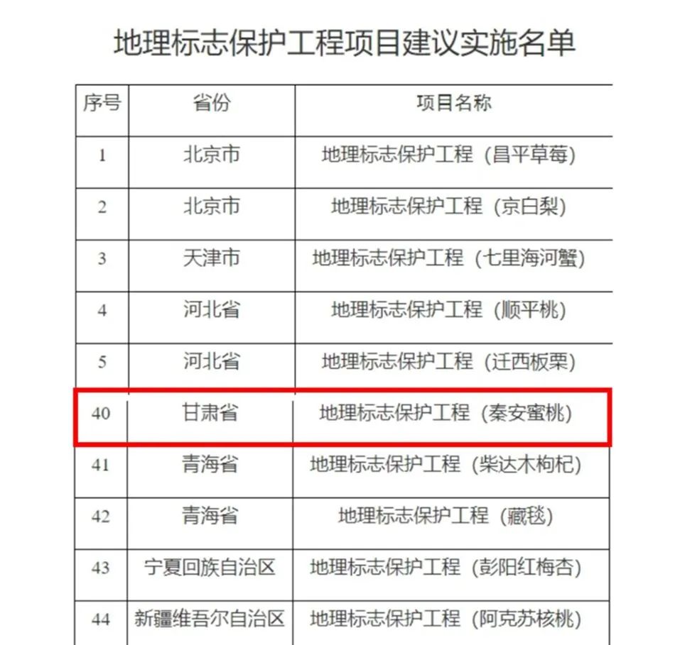 秦安蜜桃上榜2024年國家級(jí)地理標(biāo)志保護(hù)工程實(shí)施名單