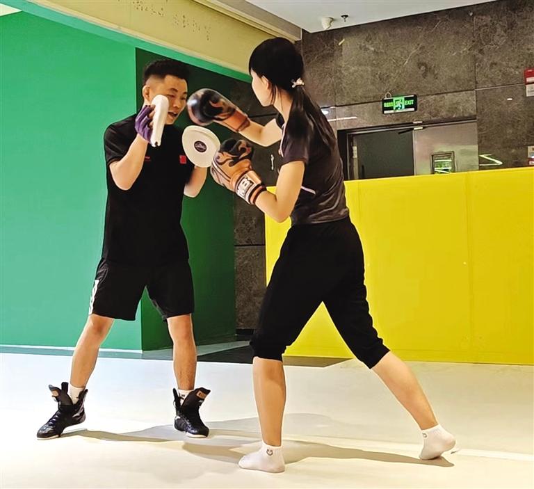 在實習之余,李王嘉楹報了一個自由搏擊課程來調劑生活。“學習防身術還能強身健體。”李王嘉楹說,在訓練過程中,跟著教練一步一步訓練,揮拳的那一刻,可以把所有的情緒都發(fā)泄出來,一場下來身心放松。話語中洋溢著自我提升的渴望和對未來的憧憬。