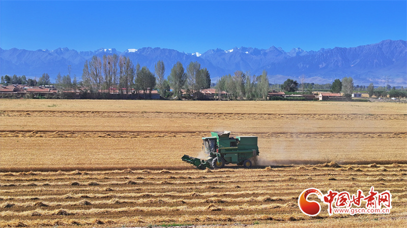 眼下,位于祁連山下的民樂縣南古鎮(zhèn)毛城村800畝連片小麥種植基地上,機聲隆隆,農(nóng)機手們駕駛收割機穿梭往返麥田之中搶收小麥,一派忙碌的豐收景象。近期,隨著民樂縣沿祁連山冷涼山區(qū)小麥迎來成熟季,民樂縣種植的26萬畝小麥進入了繁忙的收割期。