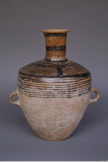 (弦紋彩陶雙耳瓶)