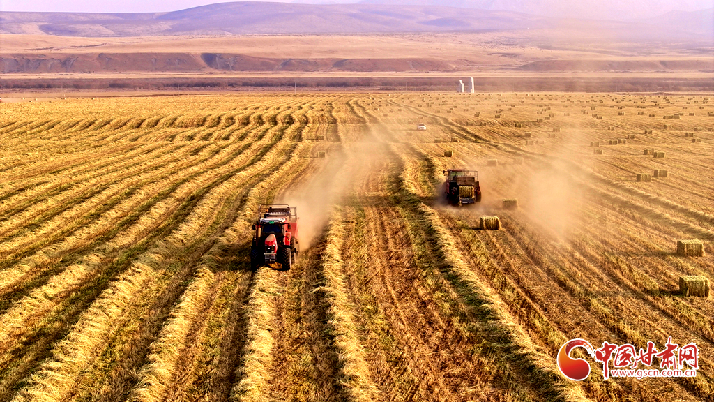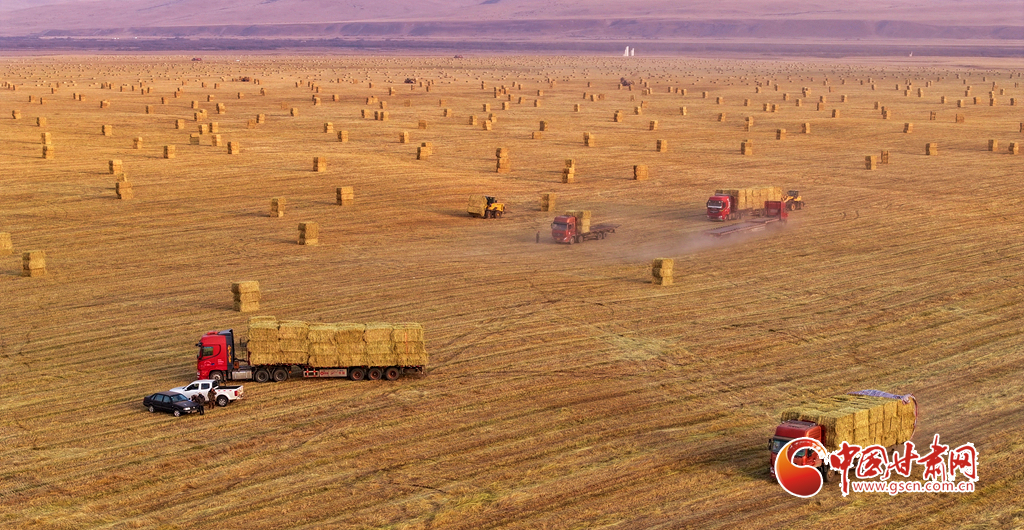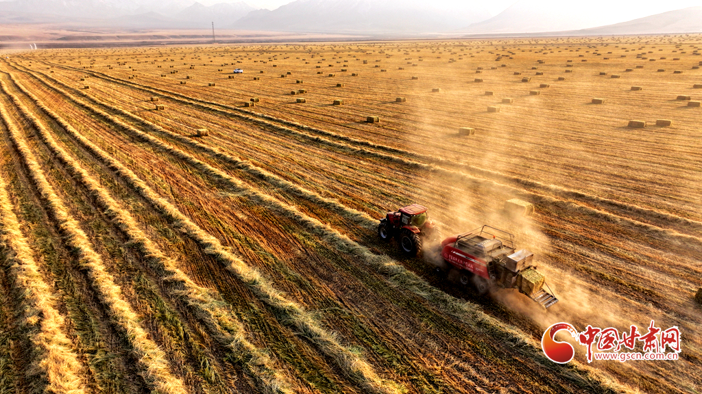 11月11日,甘肅山丹馬場(chǎng)的10萬畝燕麥草進(jìn)入打包高峰期,田野上呈現(xiàn)出一派繁忙而有序的景象。放眼田間,大型農(nóng)用機(jī)械來回穿梭,將燕麥草迅速壓縮、打包,一個(gè)個(gè)草捆整齊排列。與此同時(shí),滿載草捆的運(yùn)輸車在田間小道上來回奔波,將成品送往倉庫和銷售地。