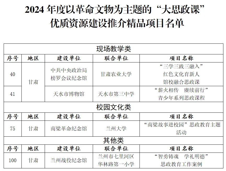 甘肅4項案例入選2024年度以革命文物為主題的“大思政課”優(yōu)質(zhì)資源建設(shè)推介項目名單