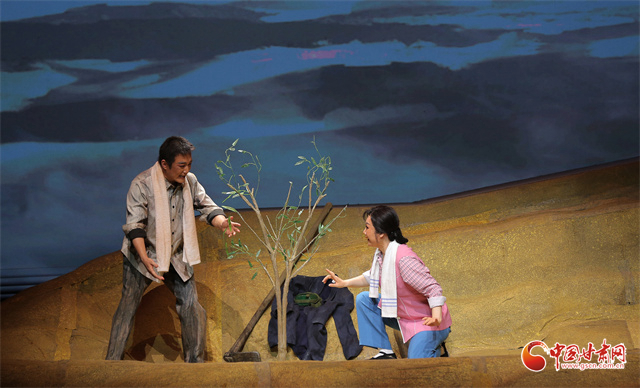中國(guó)甘肅網(wǎng)11月13日訊(西北角·中國(guó)甘肅網(wǎng)記者 任磊)12日晚,由甘肅省文化和旅游廳與陜西省文化和旅游廳聯(lián)合主辦的“春綠隴原”文藝精品交流演出拉開帷幕,首場(chǎng)演出秦腔現(xiàn)代劇《生命的綠洲》在黃河劇院精彩上演,為金城的戲迷們呈現(xiàn)出毛烏素沙漠從“千年沙漠”到“萬(wàn)里綠洲”的人類生態(tài)奇跡故事。