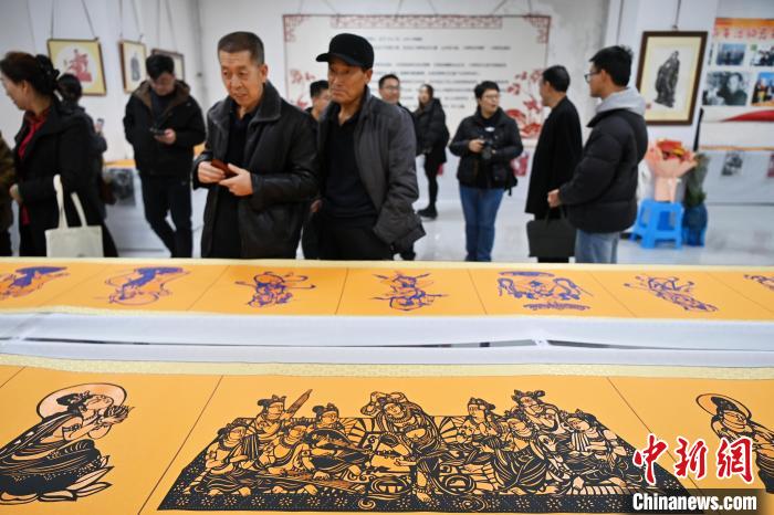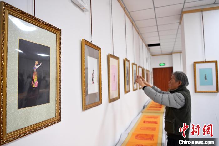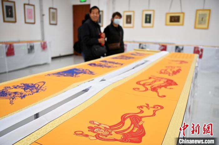 11月19日,“蘭州剪紙”非遺傳承人李自新、李麟桐剪紙藝術展在甘肅省蘭州市開幕,展出以敦煌壁畫、隴上風物等為題材,精心創(chuàng)作的剪紙作品。圖為展出的剪紙作品。中新社記者 九美旦增 攝