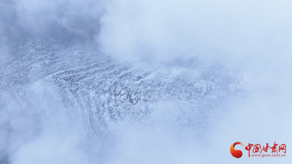 從高空俯瞰,云海之中霧凇景觀蔚為壯觀,連綿起伏的山巒美如仙境。縹緲的云霧似輕紗流淌涌動(dòng),漫過(guò)靜謐的山林,好似一幅如夢(mèng)似幻的水墨畫(huà)卷。