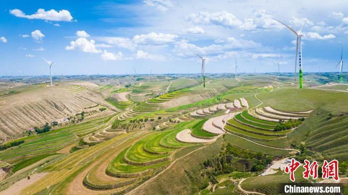 中新網(wǎng)蘭州11月26日電(高展 陳高鳳)在甘肅慶陽,有一座名為環(huán)縣的北方小城。境內(nèi)山脊層疊、溝壑連綿,山梁上,潔白的風(fēng)車與湛藍(lán)的天空交相輝映;山坡上,藍(lán)色光伏板與黃土地交織成獨特景致。這些美好“風(fēng)光”正源源不斷地轉(zhuǎn)化為清潔電能,也成為這座小城迎“風(fēng)”追“光”,撬動新能源經(jīng)濟(jì)的堅實底氣。