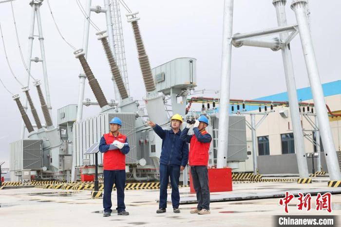 國網(wǎng)慶陽供電公司工作人員在華能翼珍風(fēng)光電站巡視設(shè)備運行情況。楊馥毓 攝