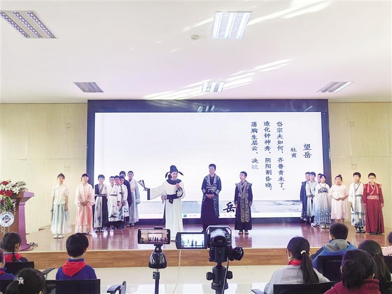 活動(dòng)現(xiàn)場,燈光柔和,氛圍莊重而溫馨。舞臺(tái)上,教師與學(xué)生代表們身著古裝,仿佛將觀眾帶入了千年前的唐朝。他們的表演深情而投入,每一個(gè)動(dòng)作、每一句臺(tái)詞都充滿了對杜甫及其時(shí)代的敬意。