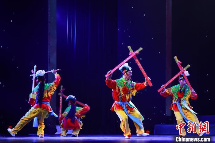 12月9日,甘肅蘭州,來自甘肅定西市隴西縣的云陽板舞表演者,演繹古老文化。田鵬鶴 攝
