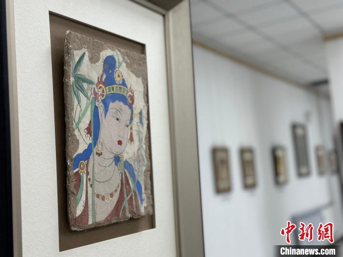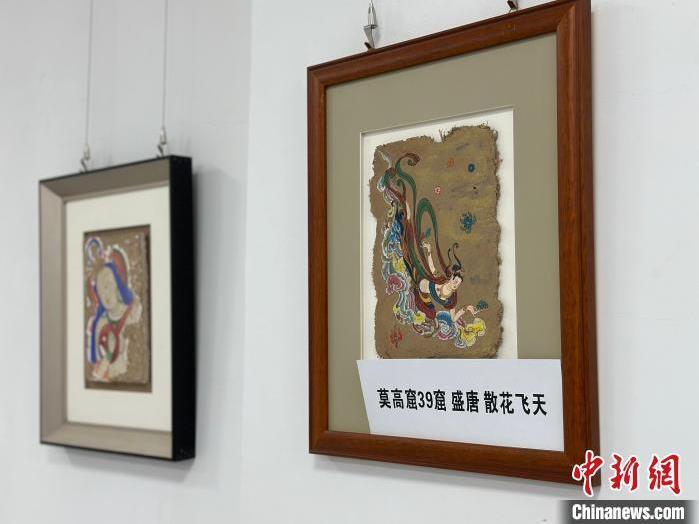 12月17日,由蘭州市七里河區(qū)委宣傳部、七里河區(qū)文體旅局聯(lián)合舉辦的“大漠孤陽映彩霞 敦煌神韻美如畫”新時代文明實踐主題活動暨敦煌巖彩畫書畫藝術(shù)展拉開帷幕。圖為展出的敦煌莫高窟壁畫題材巖彩畫。楊娜 攝