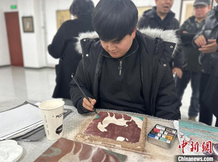12月17日,由蘭州市七里河區(qū)委宣傳部、七里河區(qū)文體旅局聯(lián)合舉辦的“大漠孤陽映彩霞 敦煌神韻美如畫”新時代文明實踐主題活動暨敦煌巖彩畫書畫藝術(shù)展拉開帷幕。圖為青年畫師現(xiàn)場繪畫。楊娜 攝