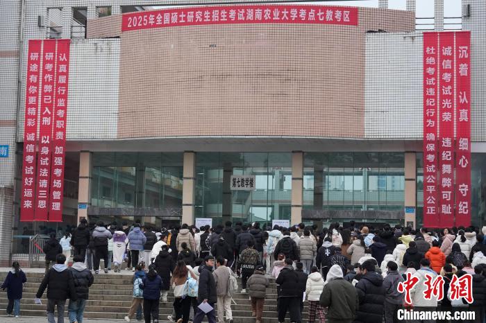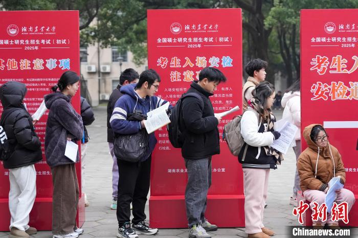 12月21日,2025年全國碩士研究生招生考試初試開考,眾多考生來到湖南農(nóng)業(yè)大學(xué)考點(diǎn)參考。據(jù)教育部數(shù)據(jù)顯示,2025年全國碩士研究生報(bào)名人數(shù)為388萬,相比去年下降50萬人,已是連續(xù)兩年報(bào)名人數(shù)下降。圖為志愿者將椅子與取暖設(shè)備送入考場。中新社記者 楊華峰 攝