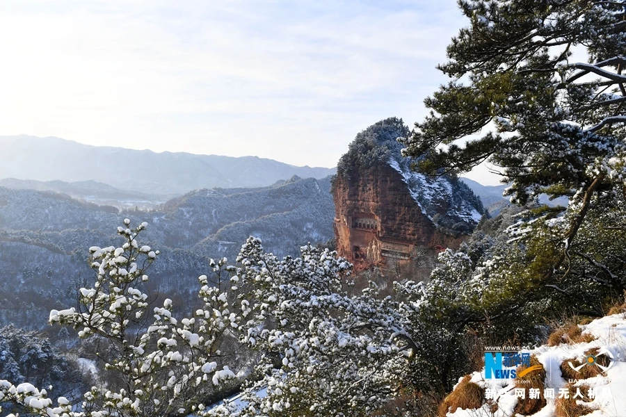 雪后初霽的麥積山宛如仙境。來源:新華網(wǎng)