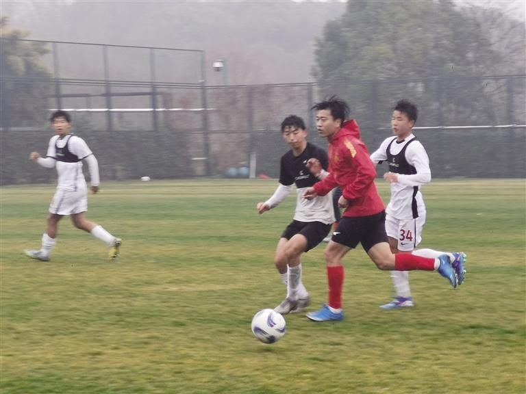 2月15日的上海陰雨連綿。當日下午,在霧氣籠罩的上海東方綠舟體育訓練基地,蘭州隴原競技冒雨迎來冬訓第二階段的第二場熱身賽,對手是主場作戰(zhàn)的上海海港預備隊。