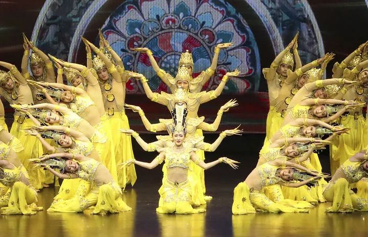 2024年9月20日,演員在第七屆絲綢之路(敦煌)國際文化博覽會舉行期間表演大型情景音畫劇《千手千眼》。新華社記者 郎兵兵 攝