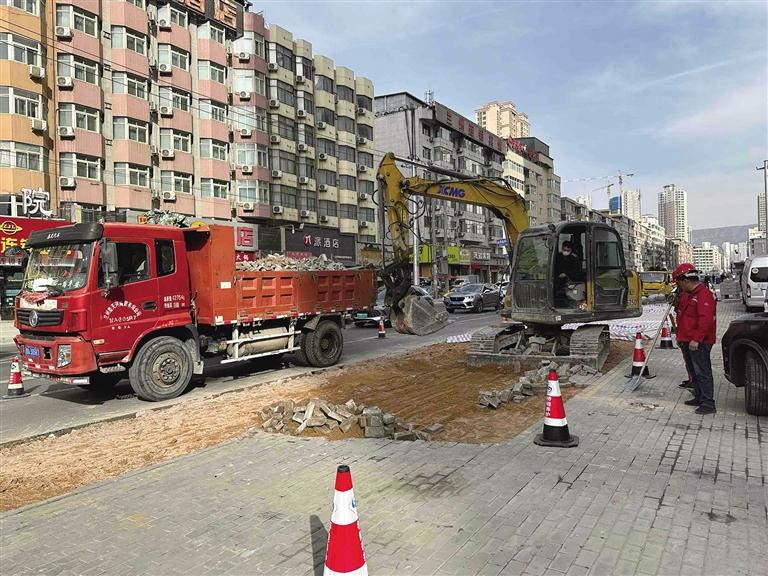 “該項目于2月初完成道路雙向改造實施方案,并初步完成交通導(dǎo)改方案,2月中旬開始實施人行道換磚,截至目前已拆除人行道磚約1300平方米,安裝道牙262米,鋪筑人行道道板1166平方米。”蘭州市政工程服務(wù)中心東崗設(shè)施養(yǎng)護所副股長馬全新介紹,該項目主要建設(shè)道路工程、雨水工程、管線改遷、照明工程、交通設(shè)施及相關(guān)配套設(shè)施,計劃5月完工。