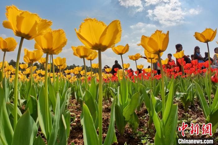 原標題:長沙數(shù)十萬株郁金香盛放 游人共赴浪漫花海