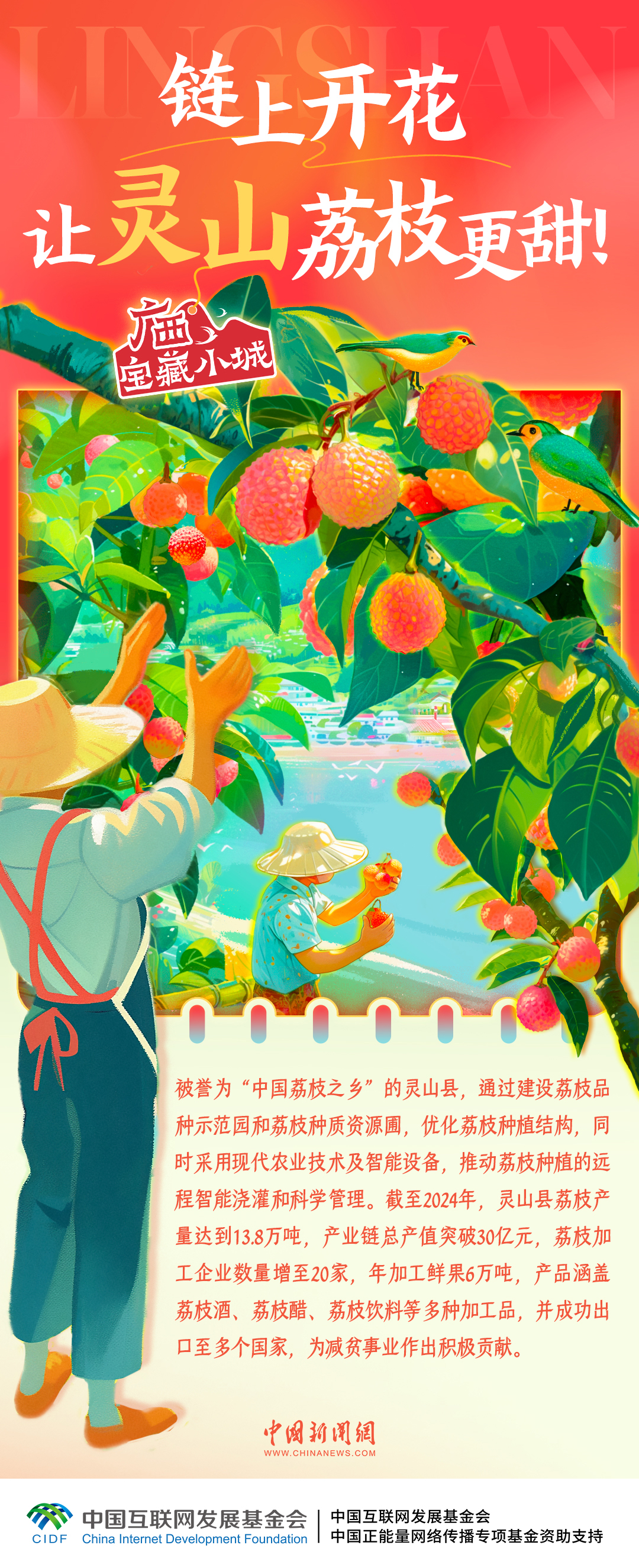 被譽(yù)為“中國(guó)荔枝之鄉(xiāng)”的靈山縣,正以創(chuàng)新之姿引領(lǐng)現(xiàn)代果業(yè)發(fā)展浪潮,打造從鮮果到深加工的完整產(chǎn)業(yè)鏈,多元產(chǎn)品暢銷海內(nèi)外,實(shí)“荔”出圈。一起走進(jìn)廣西寶藏小城靈山,感受荔枝產(chǎn)業(yè)的智慧轉(zhuǎn)型↓↓↓