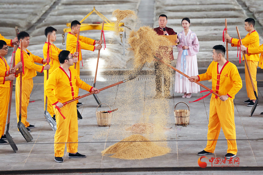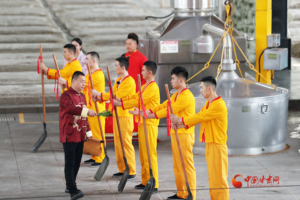 開釀儀式盡顯古樸,釀酒傳承人身著吉服,誦讀酒經(jīng)與祖訓(xùn):“德不立者不釀,心不誠者不釀……”并撒糠祈福,敬謝酒祖,隨著開釀聲起,酒匠們有條不紊開動(dòng),一锨一鏟,一甑一耙,配合默契,仿佛時(shí)光倒流至千年前。