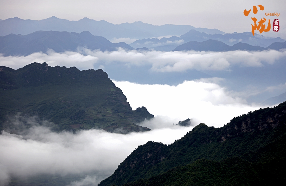 大雨過后,波瀾壯闊的云海層層疊疊,猶如萬馬奔騰,時(shí)而風(fēng)平浪靜,浩如煙海;時(shí)而沒過山間,猶如涌動的潮水;時(shí)而悄悄褪去,猶如飄動的面紗,宛若人間仙境。