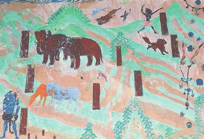 東漢應劭在《風俗通義·祀典》中寫道:“臘者,獵也,言田獵取獸以祭祀先祖也?;蛟唬?lsquo;臘者’接也,新故交接,故大祭以報功也。”意思是說一年中最后一個月是古人用來狩獵的月份,而狩獵所獲的獵物會被風干做成臘肉來祭祀祖先。這個月也被叫作“獵月”或是“臘月”。據《禮記·月令》記載,在秋季的最后一個月舉行田獵,借此機會教民戰(zhàn)陣,練習五種兵器的使用,并頒布乘馬的政令。獵畢,命令主管祭祀的官員,用獵獲的鳥獸祭祀四方之神。在莫高窟第249窟壁畫中有一幅“行獵圖”:畫面上都是些體形巨大的動物,有體態(tài)矯健的猛虎、疾馳駿逸的鹿群等。還有在奔馳的駿馬上拈弓搭箭窮追不舍的獵人、在飛奔的駿馬上淡定轉身從容射虎的獵人。整個畫面既緊張又靜謐美好,使人不由得對畫師精湛的技藝心悅誠服。