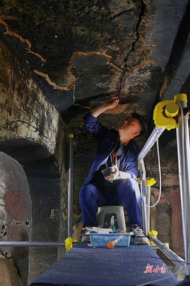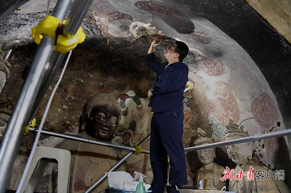 石窟外的時間流過千年,加之地處多雨林區(qū),文物保護變得極為不易,塑像和壁畫容易出現(xiàn)空鼓、開裂、脫色等病害。為保護好麥積山石窟,他們堅守在山野之間,與寂靜洞窟為伴,不斷更新文物保護方式,守護著這些珍貴的歷史文化瑰寶。