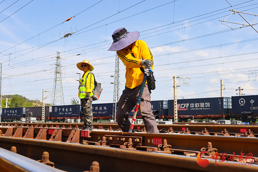 此刻,編組站內(nèi)一輛輛滿載貨物的中歐班列鳴笛啟程,呼嘯而過,駛向祖國(guó)的四面八方。正是有了無數(shù)像這樣高溫下堅(jiān)守的鐵路人,才筑起了鐵路運(yùn)輸安全的堅(jiān)固屏障,用汗水澆灌著運(yùn)輸安全,讓鋼鐵巨龍?jiān)?ldquo;絲路驛站”上始終昂首前行。