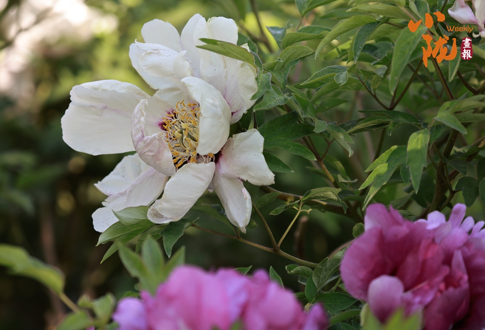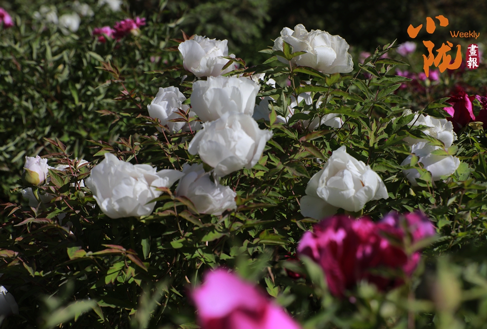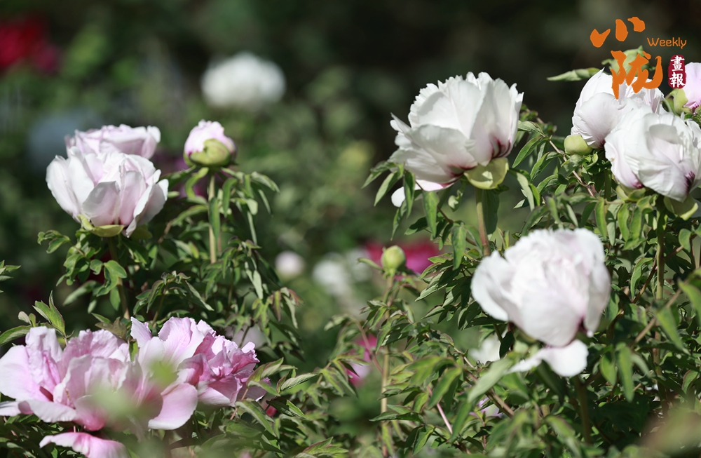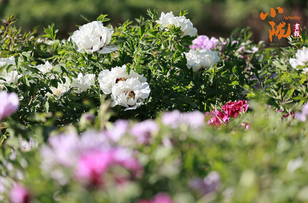 陽(yáng)光照射下,牡丹粉的如霞,嬌艷柔美;白的像雪,純凈典雅,還有紫、黃等多種色彩相互交織,花朵碩大且花瓣層層疊疊,在微風(fēng)中輕輕搖曳,散發(fā)出陣陣淡雅的清香,讓人陶醉其中。