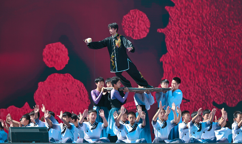 活動伊始,開場片《歡迎乘坐崆峒號》以“環(huán)西部火車游·崆峒號”平?jīng)雎糜螌A袨殪`感,通過跨時空對話串聯(lián)崆峒山古今脈絡(luò),拉開活動序幕?,F(xiàn)場,街舞與崆峒武術(shù)團體合作的《武韻崆峒》展現(xiàn)武術(shù)與現(xiàn)代肢體藝術(shù)新生機;笛子演奏與武術(shù)冠軍聯(lián)袂呈現(xiàn)的《崆音劍影》打造“可聽的武術(shù)”沉浸式體驗;30人陣容的江蘇武協(xié)女子太極拳團體演繹《鶴起崆峒》,詮釋武術(shù)新功用;國風(fēng)歌手與秦腔表演藝術(shù)家合作的《秦韻長歌》,展現(xiàn)“武戲同源”的多元魅力。