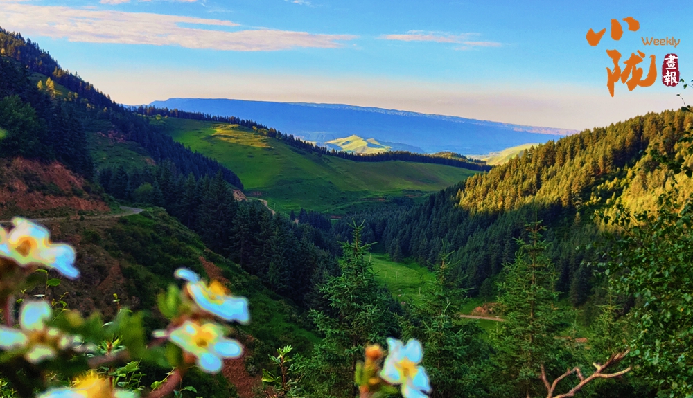 在起伏的丘陵間,廣袤的草原宛如少女柔美的曲線,美得簡(jiǎn)直超出想象,綠草茵茵、繁花似錦,微風(fēng)吹過(guò),濃郁的花香撲鼻而來(lái)。那連綿的群山、蜿蜒的河流,交織成網(wǎng),將這片土地滋潤(rùn)成生命的綠洲。
